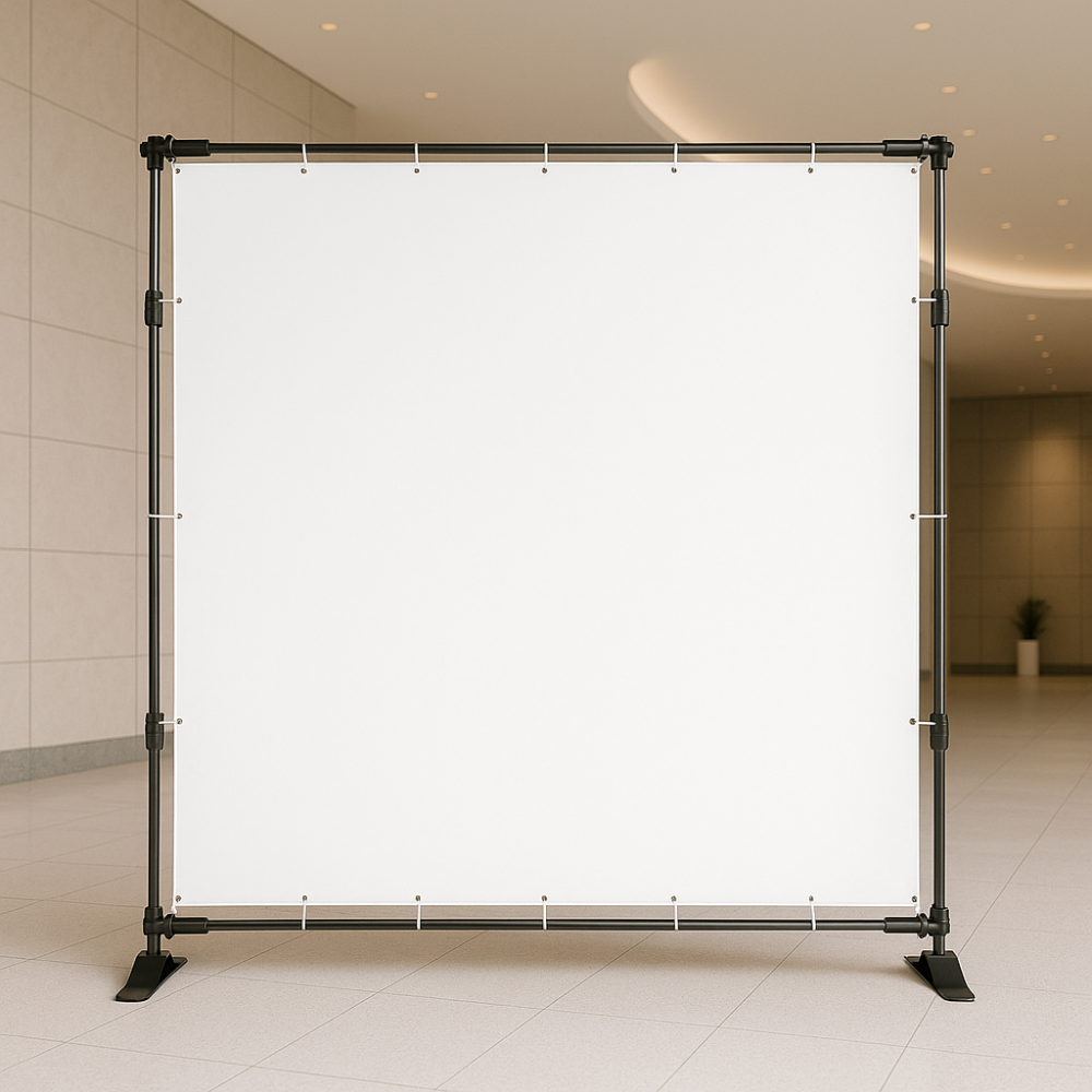 كبيراستاند معدني مرن مقاوم للصدأ ، يمكن تغيير مقاساته حسب الحاجة ، يستخدم للاعلانات أو خلفية تصوير ، يتم طباعته بتصميمك الخاص ,يأتي بمقاس 2*3 م ، قابل للتغيير الى 3*3 .